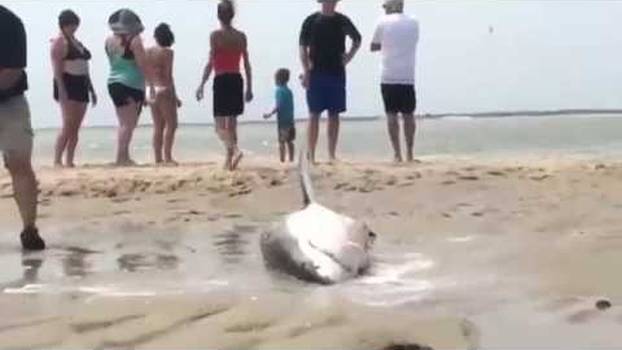 Život su mu spasili ljudi koji su ga cijelo vrijeme polijevali vodom. Akcija spašavanja života morskog psa koji se na trenutke činio mrtav srećom je imala sretan kraj.