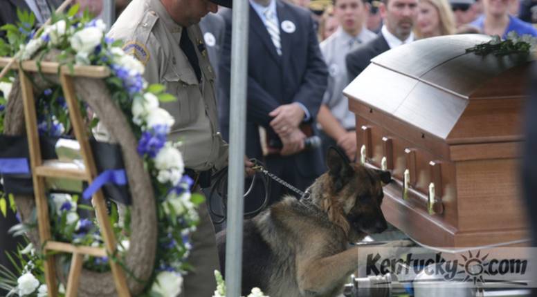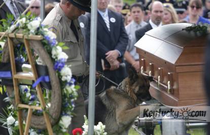 Poput mnogobrojnih kolega policajaca i on mu je došao dati posljednji pozdrav. Stavljanjem šape na lijes pokazao je da i životinje imaju osjećaje. Fotografija objavljena na društvenoj mreži Reddit ubrzo je obišla svijet.