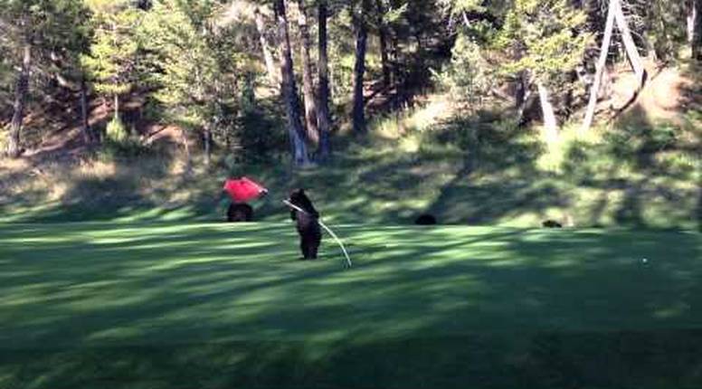 Scena koju možete vidjeti u videu dogodila se u Kanadi. Trojica prijatelja iz Calgaryja zaigrala su golf na terenu uz šumu. Taman kad su mislili zaigrati na 15.rupi iz šume je izašao medo i napravio show.