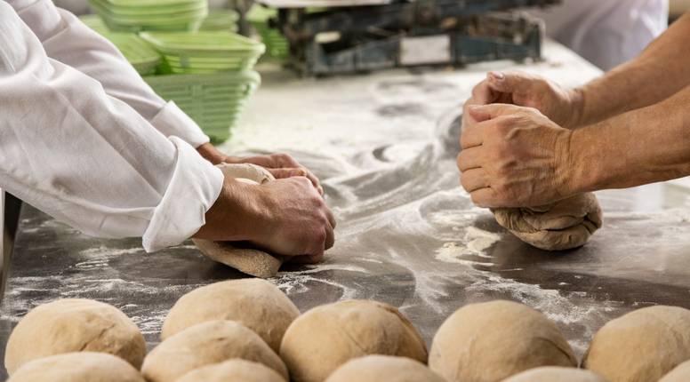 Proizvodnja u Pan-peku odvija se u tri smjene, što znači da jutarnja ekipa preuzima posao od kolega iz noći. Nema praznog hoda -pogon je već u punom ritmu, a na više linija paralelno nastaju različiti proizvodi. Sve mora funkcionirati precizno, sinkronizirano i bez zastoja. Proces pripreme proizvoda razrađen je do najsitnijih detalja: od pripreme sirovina prema točno zadanim recepturama, preko miješanja tijesta, njegova dijeljenja i oblikovanja, zatim fermentacije i pečenja, pa sve do komisioniranja i pripreme za distribuciju.