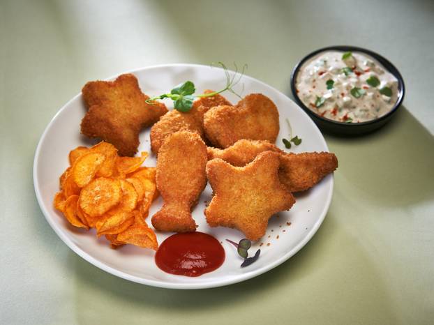 Ili druga scena: mali hrskavi riblji zalogaji Panona Mare Fishnuggets Kids, servirani uz kremasti pire od krumpira i mrkve te graška na maslacu. Sve izgleda privlačno, veselo, šareno i, što je najvažnije, jestivo iz dječje perspektive. Nitko ne postavlja pitanja, nitko ne prigovara. Tišina za stolom, ali ona dobra, kad smo zauzeti i zadovoljni jelom. Jer to je riba koja odskače po svemu!
