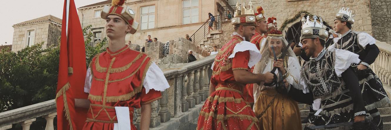 Na trenutak ćemo se zadržati na kumpanjiji - naziv potječe od riječi kompanija, što znači družina ili bratstvo, seže u srednji vijek, a vjeruje se da je kumpanjija služila i kao oblik borbene obuke te simboličan prikaz spremnosti seljana da obrane svoj dom od osvajača. Najpoznatiju kumpanjiju izvode u Blatu na praznik Gospe Snježne, većini poznatije kao Dan pobjede i domovinske zahvalnosti, ali Korčulani će se spremno opasati sabljama i za bilo koju drugu svečanu priliku slaveći svoju stoljetnu vitešku tradiciju.