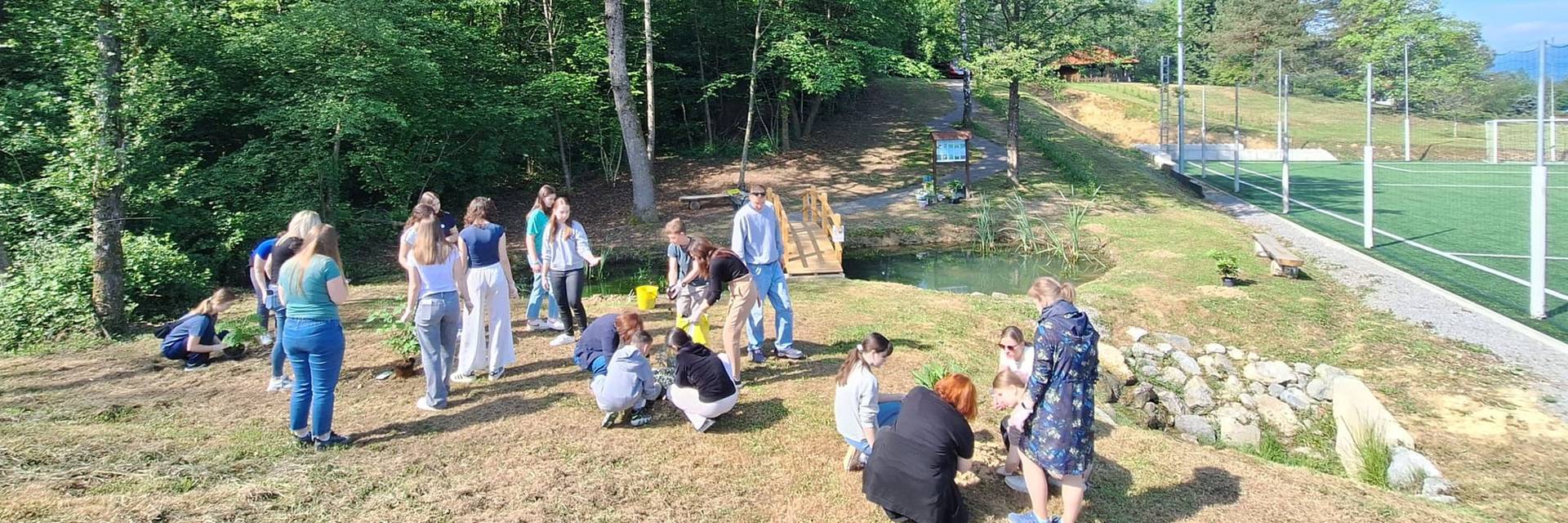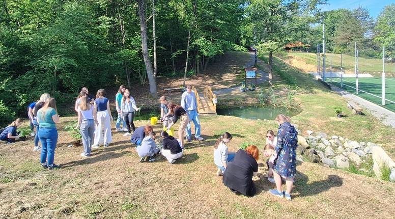 U tom zelenome mozaiku posebno mjesto zauzima školsko jezerce. Smješteno uz rub šume i uz mali potok, i ono je godinama bilo prirodna učionica: mjesto na kojem su učenici promatrali, istraživali i učili kako funkcionira mali ekosustav.
