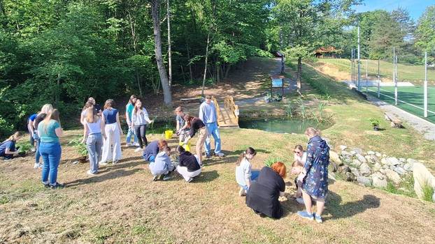 A kao i mnoge druge dobre priče, ova je počela slučajno: jednim školskim vrtom, uz mnogo truda i idejom da školsko dvorište može biti više od prostora za odmor i ukrasa škole. Danas je ono mjesto susreta, učenja i konkretnih iskustava, a nedavno je dobilo i nov i dragocjen dodatak: obnovljeno školsko jezerce.