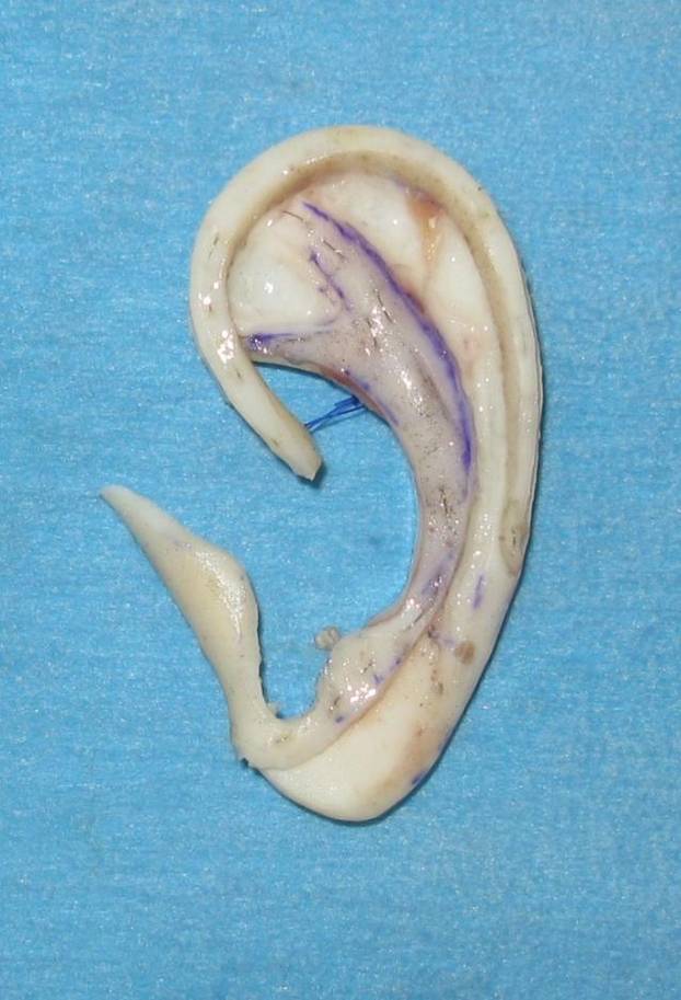 Hrskavica sedmog, osmog i devetog rebra služi za izradu nove uške. Ona sa šestog rebra koristi se u drugoj operaciji odizanja uške od podloge.
