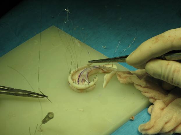 Preciznim, gotovo umjetničkim radom liječnici žicom spajaju, odnosno šivaju komadiće hrskavice kako bi dobili oblik identičan prirodnom.