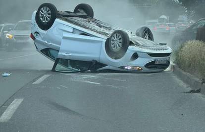 Gospođu srednjih godina građani su izvukli iz automobila koji se zapalio nakon prevrtanja u Branimirovoj. Srećom, bila je pri svijesti. Policija navodi da nema ozlijeđenih