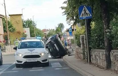 U 17 sati u Viškovu nedaleko od Rijeke, sudarila su se dva automobila, a od siline udarca jedan je završio na krovu.