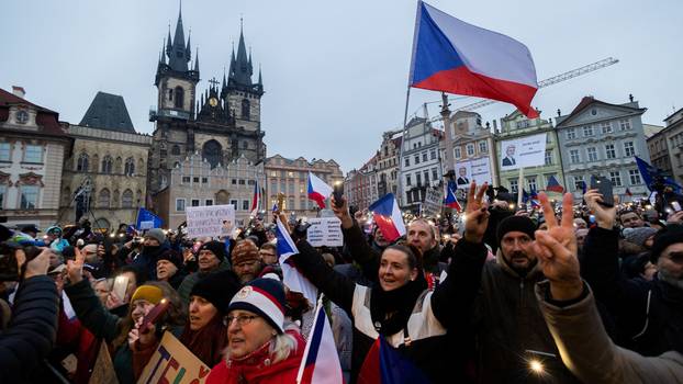 Prosvjedi su uslijedili nakon poziva građanske inicijative "Milijun trenutaka za demokraciju", koja je pozvala pristaše da podrže šefa države u njegovom sukobu s vladajućom koalicijom, izvijestila je novinska agencija CTK.