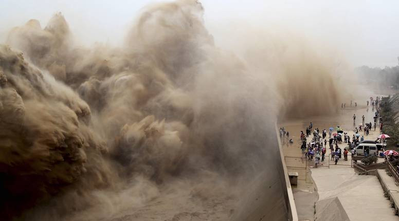 Riječ je o godišnjem čišćenju brane Žute rijeke u Kini. Kroz otvore na brani izašlo je čak 30 milijuna tona mulja. U 13 godina nakupilo ga se oko 390 milijuna tona