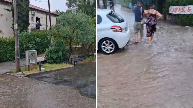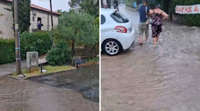- Grmi i sijeva. Sat vremena je padala kiša, na kratko se smirilo pa opet počelo. Baš je kaos - ispričala nam je čitateljica koja nam je poslala video. Na njemu se vidi kako se voda iz šahtova skoro spojila s morem koje je par metara niže.