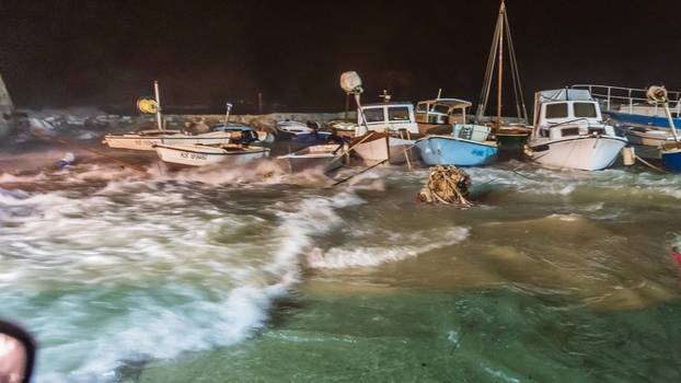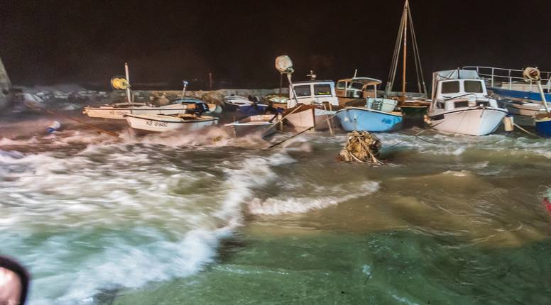 Snažna sredozemna ciklona, koju su meteorolozi danima najavljivali, u srijedu je svom snagom udarila na Dalmaciju. Orkanski udari juga, kiša nošena saharskim pijeskom i velika ciklonalna plima izazvali su kaos duž obale, poplavili rive i ulice te prodrli u kuće i poslovne prostore, ostavivši za sobom besanu noć i veliku materijalnu štetu.