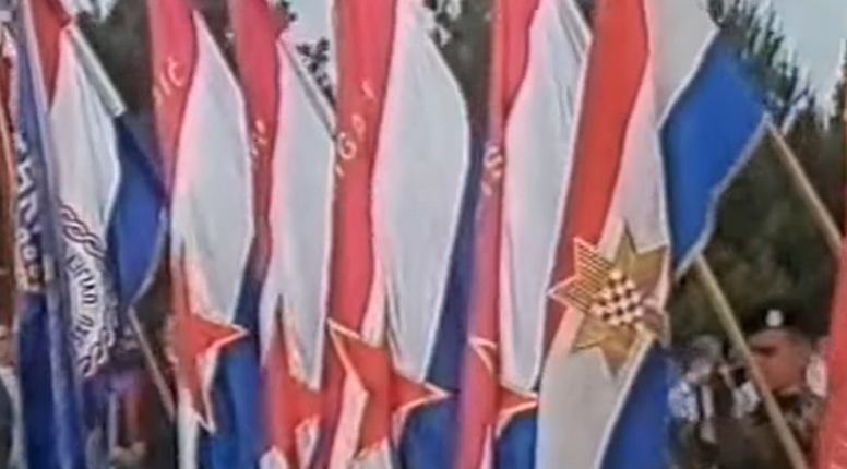 Nakon prosvjednih marševa u četiri grada rasplamsala se politička svađa oko zastava, no ista se nosila i na Tuđmanovom mimohodu 1997.