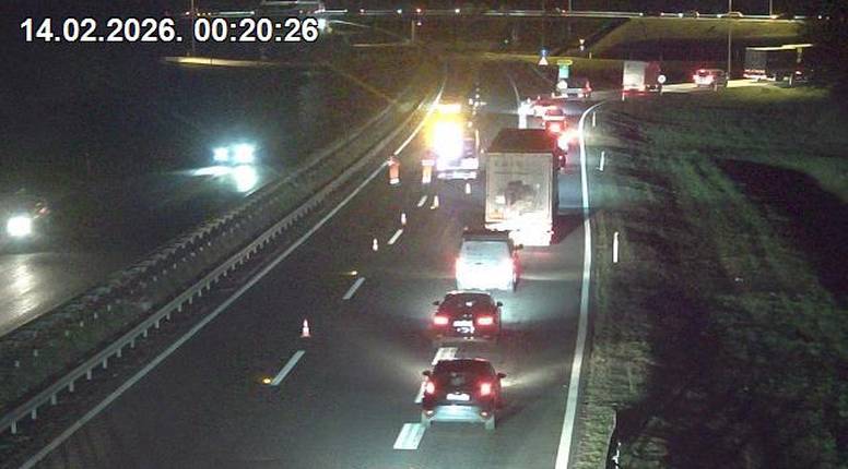 U vremenu od 22,10 do 01,45 sati za sav promet, južna kolnička traka autoceste A3 na dionici od čvora Novska do čvora Okučani bila je zatvoren, a promet se odvijao obilazno županijskom cestom.