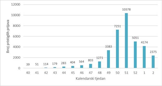 Od listopada 2025. godine do danas zaprimljeno je 36.320 prijava, dok je u istom razdoblju prošle sezone zabilježeno tek 2.847 slučajeva.