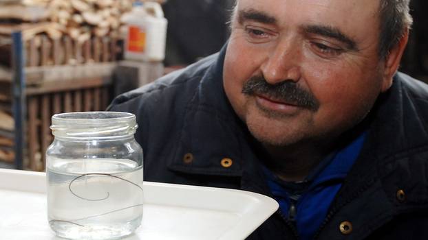 Kaže da je kontaktirao Zavod za javno zdravstvo i veterinarsku stanicu, ali nitko nije znao što bi to moglo biti. Stvorenje nalik na končić, promjera pola milimetra i dugo 26 cm Rajko je stavio u bocu s kupskom vodom jer bi ga klorirana voda iz vodovoda mogla ubiti.