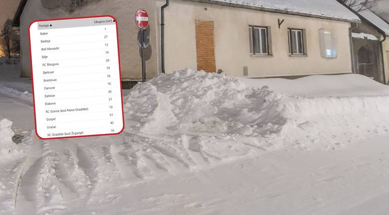 U Slavoniji je snijeg bio nešto blaži, ali i dalje značajan – Đakovo je imalo 21 cm, Bjelovar 19, Slavonski Brod 14, dok je Osijek ostao na skromnijih 10 do 12 cm.