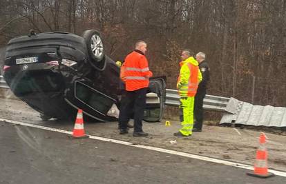 Auto je u prometnoj nesreći završio na krovu. Ozlijeđenim ljudima je pružena liječnička pomoć.
