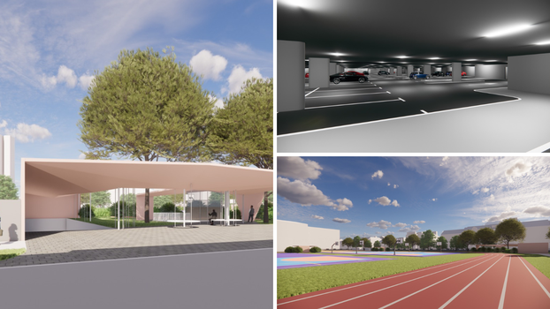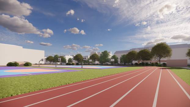 S obzirom na to da će garaža biti izgrađena ispod postojećeg srednjoškolskog igrališta, investicija obuhvaća i njegovu cjelovitu rekonstrukciju s novim sportskim sadržajima. Izgradit će se atletska kružna staza duljine 333m, pet natjecateljskih staza duljine 110m, skakalište za skok u dalj/troskok, vježbalište sa spravama, kao i igrališta za rukomet, mali nogomet i košarku. Također se predviđa i izgradnja dječjeg igrališta.