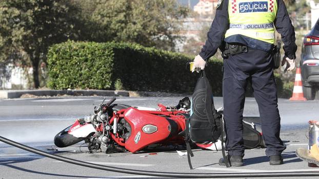 Vozač motocikla poginuo je u prometnoj nesreći koje se oko podneva dogodila na križanju Velebitske i Solinske u Splitu. Sudario se s automobilom, dijelovi motocikla i auta ostali su rasuti po cesti...