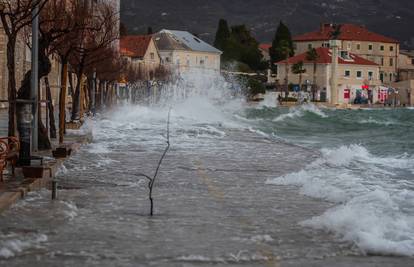 FOTO Olujno jugo opet 'potapa' Kaštela! Oglasili su upozorenja, more se izlijeva na obalu...