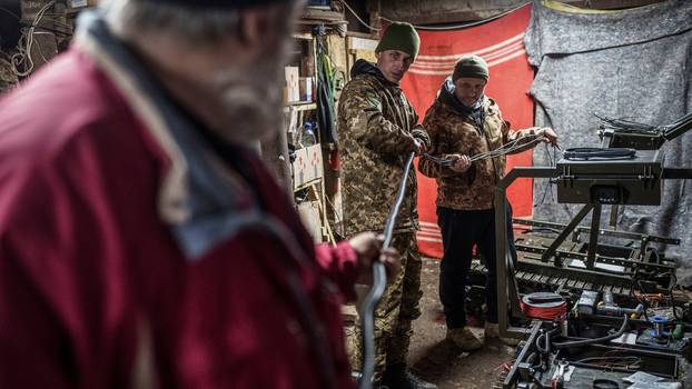 U skrivenoj radionici negdje u Donjeckoj oblasti, umjesto zvuka teške mehanizacije, čuje se zujanje alata i prigušeni razgovori vojnika nagnutih nad niskim, gusjeničnim šasijama.