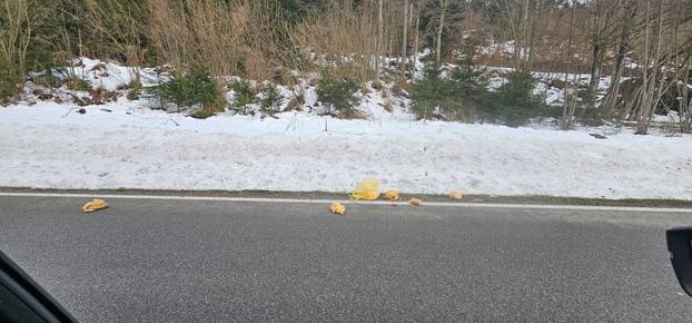 FOTO Pilići se rasuli po cesti blizu Skrada: 'Nije lijep prizor'