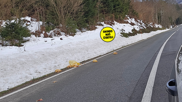- Pilići su rasuti na potezu Skrad-Donja Dobra. Umirovljenici imaju organiziranu dostavu pilića, tako da mislim da je to ispalo iz tog vozila. Ne znam, ali izgleda odvratno. Komadi, dijelovi pilića rasuti po cesti - ispričao nam je čitatelj koji nam je poslao fotografije.