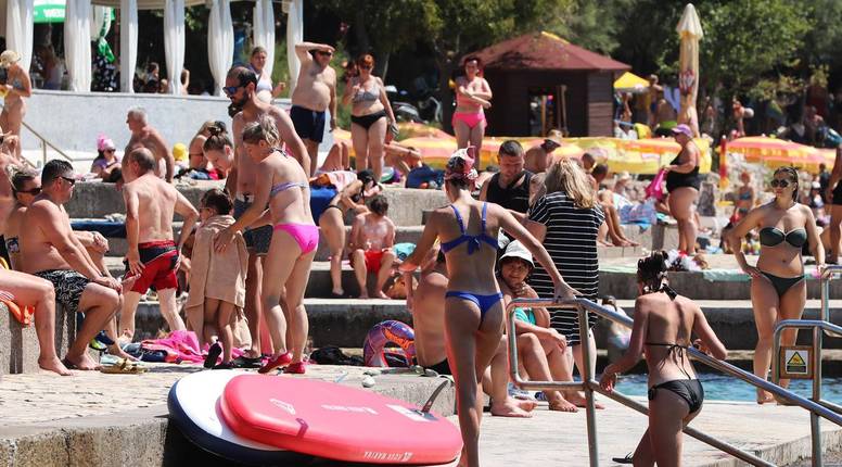 NOVI VINODOLSKI Toplinski val trebao bi se razbiti u u nedjelju kad su najavljeni pljuskovi i grmljavina. Kupači i turisti iskoristili su sunčanu subotu pa su napunili plaže. Fotografije su iz Novog Vinodolskog...