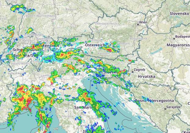 U Dalmaciji umjereno i jako jugo popodne u okretanju na jugozapadnjak, a prema večeri će se sjeverozapadnjak proširiti duž cijele obale. Izdan je i žuti meteoalarm za nekoliko regija te se upozorava na mogućnost snažnih pljuskova praćenih grmljavinom. Prema Rain Alarmu u smjeru Hrvatske dolaze oblaci koji bi mogli donijeti jače oborine...