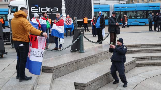 ZAGREB - Prvi navijači okupljaju se u ranim popodnevnim satima na glavnom zagrebačkom Trgu uoči svečanog dočeka rukometaša koji su na Europskom prvenstvu osvojili brončanu medalju. Radnici postavljaju binu na kojoj će zapjevati Marko Perković Thompson, prema želji igrača i Hrvatskog rukometnog saveza. Na Trgu bana Josipa Jelačića puno je policije.