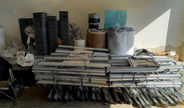 No, pronašli su mu i opremljen ilegalni laboratorij za „indor“ uzgoj indijske konoplje, odnosno 50-ak komada led lampi, kompletni sustav za ventilaciju prostora s elektromotorima za dovod i odvod zraka spojenih fleksibilnim cijevima na filtere zraka, električnog sustava za kontrolu kvalitete zraka i tla te više PVC kanistara s tekućim gnojivom.