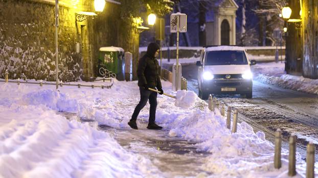 Palo je 24 centimetra snijega, ulice su bijele, građani uzeli lopate u ruke, a najveća opasnost vrebaju neočišćene pješačke staze – sutra nas čeka ledeno jutro s minusima do -11.