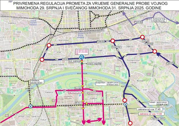 - Od 17:15 do 23:00 zatvaraju se Sarajevska, Most mladosti i Avenija Marina Držića zbog prolaska vojske.