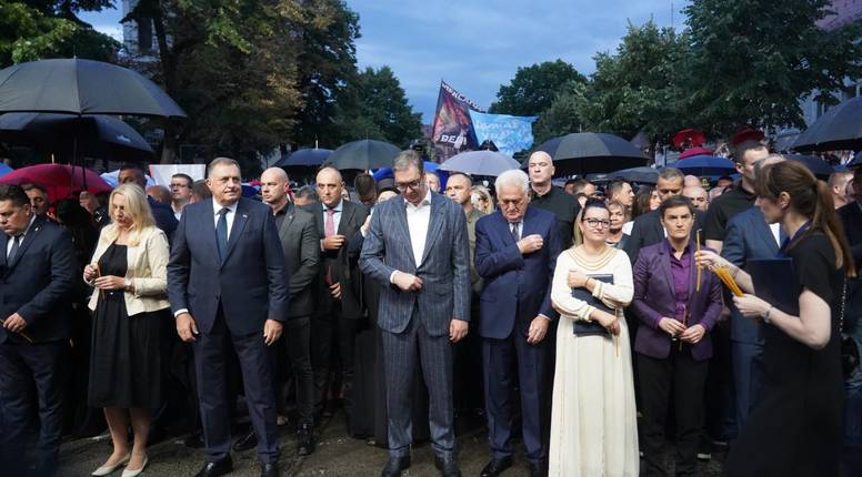 Na skupu koji organiziraju srbijanske vlasti čulo se da se stradale sunarodnjake ne smije zaboraviti, da će "Srbija čiuvati mir i stabilnost" i da "više nikad i nikome nijedna Oluja neće uspjeti".