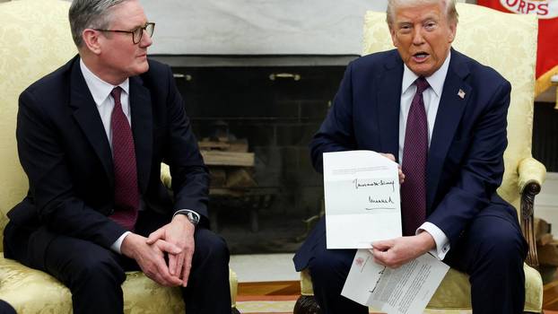 Starmer je Trumpu uručio kraljevo pismo na konferenciji za medije koju su održali netom prije sastanka na kojem se očekuje razgovor o Ukrajini