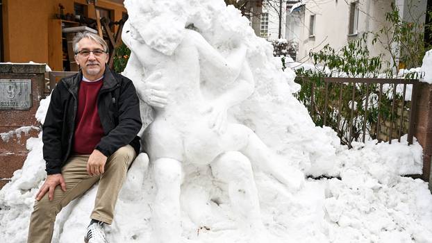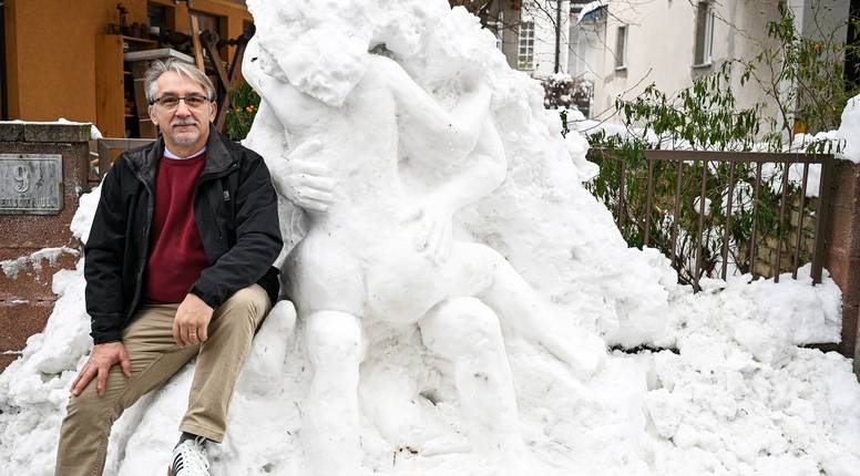 Akademski umjetnik Siniša Reberski i profesor na zagrebačkoj Akademiji likovnih umjetnosti u srijedu je na hladnoći tri sata od snijega oblikovao par koji se prepustio strastima. 'Michelangelo' s Trešnjevke oduševio je susjede, a Reberski kaže da to ne smatra remek djelom, ali drago mu je da su ljudi prepoznali talent i trud.