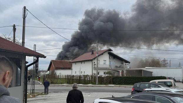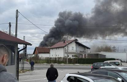 Područje je prekrio gusti crni dim, širi se smrad spaljenog materijala, situacija nije nikako ugodna za sve koji se nalaze u blizini zapaljene hale.