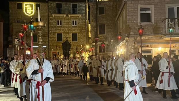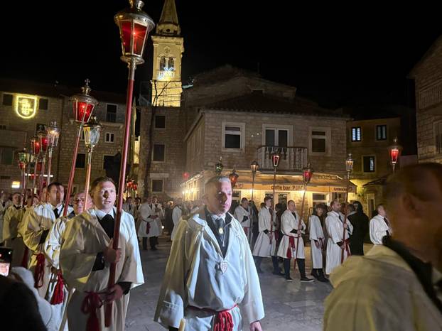 Procesija "Za križen" održava se na središnjem dijelu otoka Hvara svaki Veliki četvrtak već više od 500 godina. Procesija se održava bez obzira na vremenske neprilike, poput jake bure koja danas puše. Velika je čast nositi križ, a budući križonoše poznati su i desetljećima unaprijed. U Jelsi se okupilo nekoliko stotina vjernika.