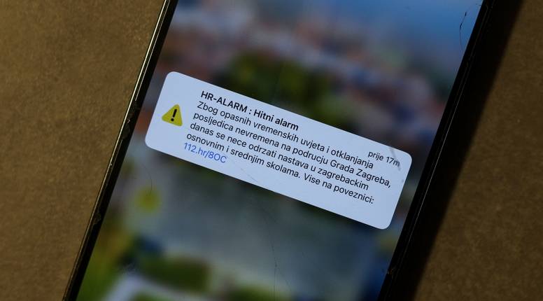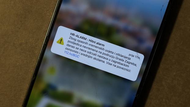 Zagrepčanima je u petak ujutro na mobitele stigla poruka upozorenja da se zbog opasnih vremenskih uvjeta i otklanjanja posljedica nevremena na području Grada Zagreba danas neće održavati nastava u osnovnim i srednjim školama.