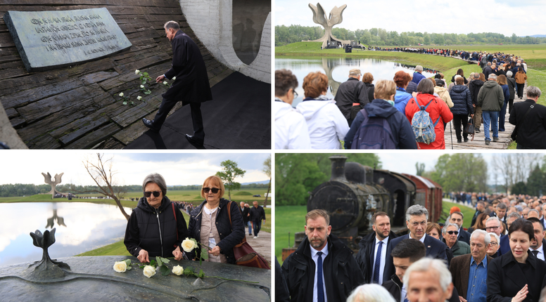 Izaslanstva Hrvatskog sabora, Vlade, Predsjednika Republike i drugih položili su podno spomenika ruže u spomen na žrtve koncentracijskog logora.