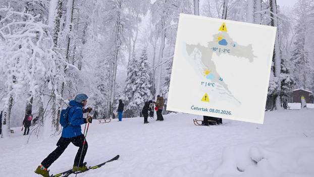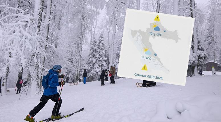 Upozorenja su oglašena i za četvrtak, 8. siječnja. Zagrebačka, karlovačka, gospićka i riječka regija su pod žutim upozorenjem zbog iznimno niskih temperatura.