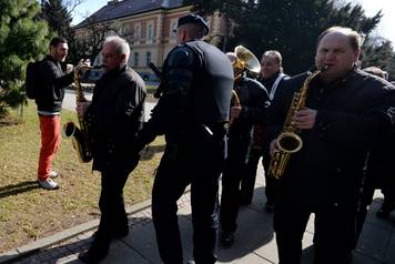 Bizarnu kolonu predvodio je predsjednik stranke Dražen Keleminec, a pratila ih je limena glazba.
