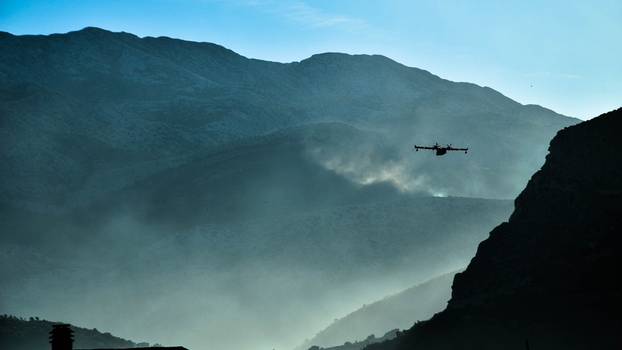 Vatrogascima se u gašenju vatrene buktinje jutros u 6 sati prvo pridružio jedan kanader, a 40-ak minuta kasnije i drugi.