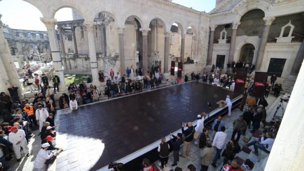 Podsjetimo, Biškić je izradom najveće čokolade na svijetu, dimenzija 16 puta 6,5 metara i debljine jedan centimetar proslavio 25 godina solinske tvornice Nadalina. Poslasticu je više tjedana pripremalo 15 djelatnika tvornice. Bila je postavljena na Peristilu, koji su kasnije podijelili građanima i djeci u domovima. U nju je utrošeno 800 kilograma tamne čokolade sa 70 posto kakaa.