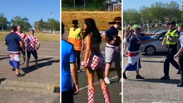 Jedan od navijača počeo je vrijeđati Ivanu Knoll, a drugi je stao u njenu obranu. Tu se umiješao i treći muškarac pa su se nakratko i fizički obračunali. Naposlijetku su se sukobili i s policijom...