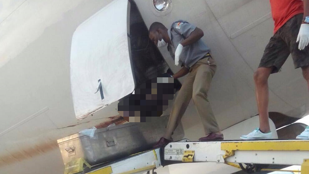 Zrakoplov se spustio kako bi natočio gorivo, a onda su radnici u zračnoj luci u Harareu primijetili da kaplje krv iz trupa letjelice. Stigla je policija pretražila zrakoplov i pronašla beživotno tijelo muškarca i gomilu keša. Zrakoplov je letio iz Njemačke u Južnoafričku Republiku.