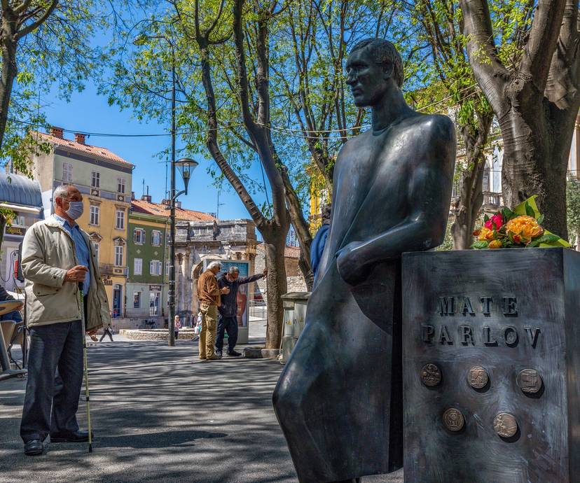 Nedavno je u Puli, na Giardinima, otkriven spomenik Mati Parlovu, legendarnom hrvatskom boksaču, osvajaču zlatne medalje na Olimpijskim igrama u Münchenu 1972. godine u poluteškoj kategoriji, svjetskom i dvostrukom amaterskom europskom prvaku u istoj kategoriji. Ipak, vrhunac njegove karijere bila je pobjeda nad argentinskim boksačem Miguelom Angelom Cuellom, kad je nokautom osvojio WBC-ovu profesionalnu titulu svjetskog prvaka u poluteškoj kategoriji. Meč se održao 7. siječnja 1978. godine u Milanu. Radi se o jednom od onih sportskih događaja koji su obilježili to vrijeme, događaja koji je za tadašnje žitelje Jugoslavije bio u rangu svjetskih ili europskih titula jugoslavenskih košarkaša. Još za života Mate Parlov proglašen je najboljim hrvatskim sportašem 20. stoljeća. Umro je u srpnju 2008. godine, u 59. godini. Radi se o brončanom spomeniku u prirodnoj veličini, na kojemu su posebno istaknuti lijeva ruka i pet najvažnijih odličja koje je Mate Parlov osvojio, koja asociraju na olimpijske krugove. Autorica spomenika je 87-godišnja zagrebačka kiparica Marija Ujević-Galetović.