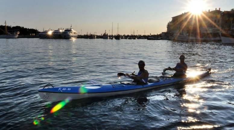 Točno u u 20 sati iz smjera talijanskog grada Grado u rovinjsku luku doveslali su u kajaku Guinessovi rekorderi Roberto Barbijeri i Riccardo Guzzolini. Oni su jutros u 8:30 započeli veslanje preko Jadrana. Tim simboličnim činom spajanja dvaju obala dali su svoj doprinos ulasku Hrvatske u Europsku uniju.