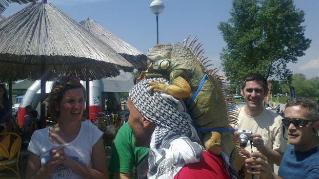 Kako ga je sve više ljudi okruživalo, iskrao se iz gomile da mu ne uplaše ljubimca. Inače iguane žive u tropskim krajevima, a u Europi su popularne kao ljubimci. Žive do 30 godina.